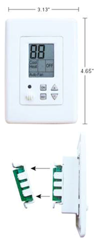 Flush mount thermostat, fits almost all electrical boxes and also can be used with IR remote.